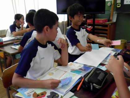 班になり、同じ意見を囲み、見出しを付けていきます♩