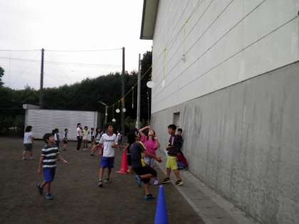 100mを子どもと一緒に走り、勝海先生は息があがります♫