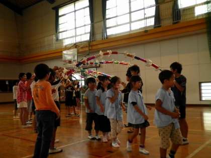 5年生が、あすなろ幼稚園のかわいい、小さなお客さんをお迎えしました。