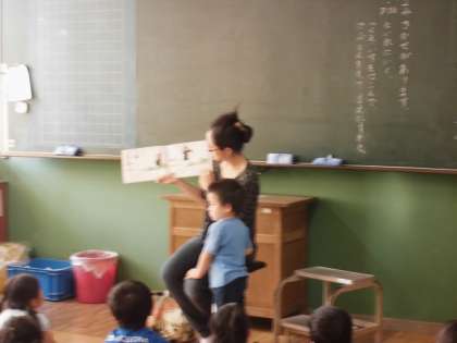 10月はハロウィーンということで、『まじょのくつ』という絵本を選びました。子どもたちは、次に何がおこるのか想像したり、ときどき、つっこみながらしっかり聞いてくれて、とても楽しかったです♬