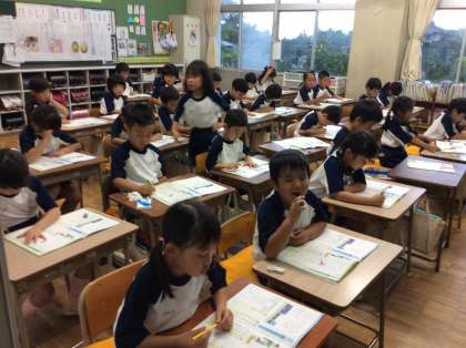 金曜日は朝学習の日です。1年生は、読解力を付ける学習を計画的に行っています。慣れてきて、解くのが速くなってきました。