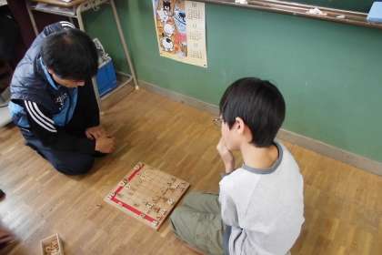 雨の日の20分休みです。 校長先生と将棋をさしています♫