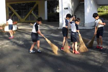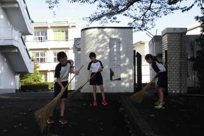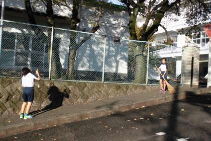 今朝は、3年生の落ち葉掃きボランティアががたくさんか活動しています♩