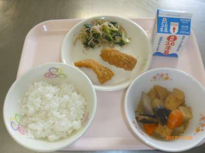 ●ご飯 ●牛乳 ●いかの更紗揚げ ●ナムル ●里芋と生揚げの旨煮