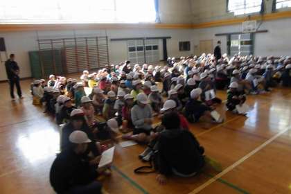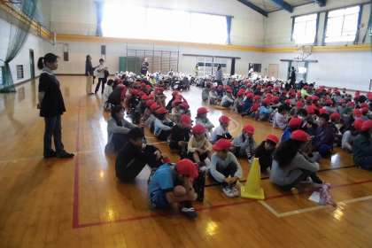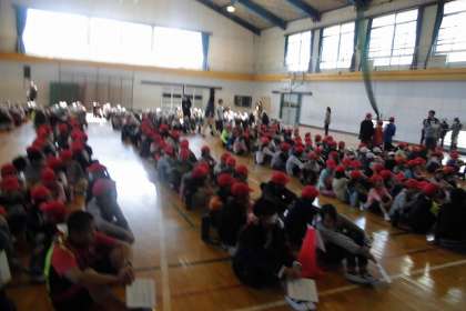 ワクワクしながら、なかよし班で集まり、開会式です♬
