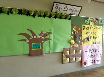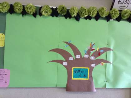 児童会の新しい企画「笑顔の大木」が始まりました。これから、この木にたくさんの花が咲いていくことでしょう。楽しみです。
