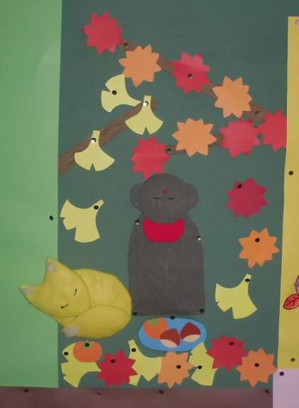 職員玄関と”すまいるどおり”が、秋の深まりをさらに感じるものにかわりました♩