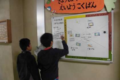 給食委員が、給食の栄養黒板を記入してくれています!