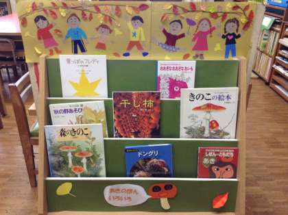 季節に合わせた本を紹介するコーナーに秋の本が並びました。