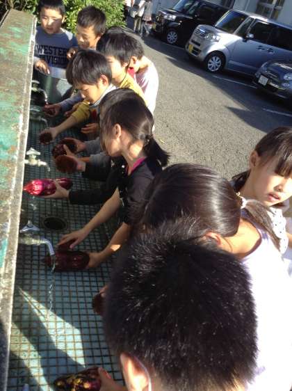 3年生の子どもたちが洗ったサツマイモは、