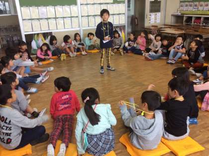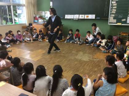1年生の今日の英語は動物でした。動物の英語をジョー先生に教えてもらった後は、動物バスケットを英語で楽しみました。