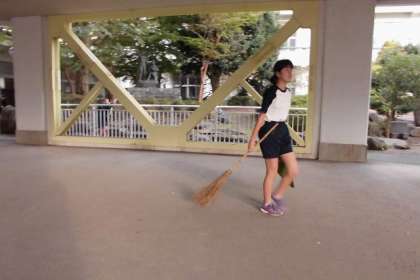 色づき落ちた葉を、掃いてくれます♪