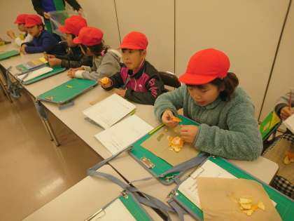 みかんを試食させていただいた後、質問タイムです。お客さんの多い日や売れる物について教えてもらいました。