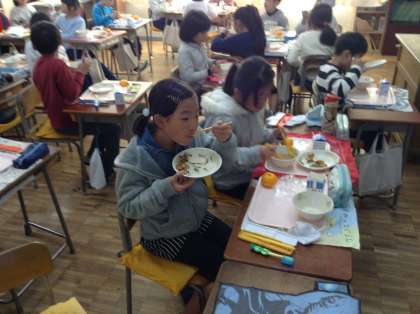 22日の大学いもにつづいて、今日の「サツマイモと大豆のあげに」に高尾園のさつまいもが出ました。