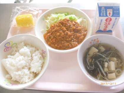 今日はチリパウダーで味付けしたひき肉とボイルドキャベツをご飯の上にのせ、混ぜながら食べます。