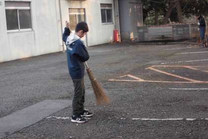 落ち葉掃きボランティア&あいさつ運動ボランティア 寒さを吹き飛ばします!!!