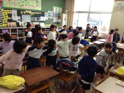 ダンス係のまねをして上手に練習していました。1年生楽しそうです。笑顔いっぱいです。