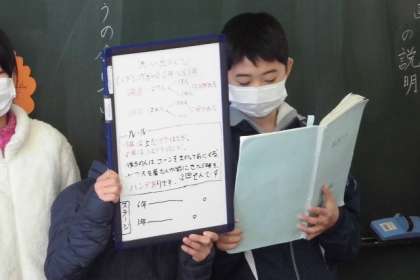 5年生の実行委員が、「6年生ありがとうの会」について説明します。