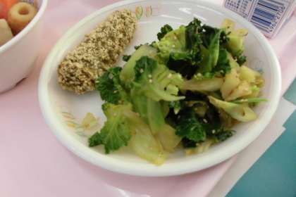 今日の給食に、プチヴェールとキャベツのおひたしがでています♩