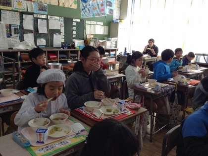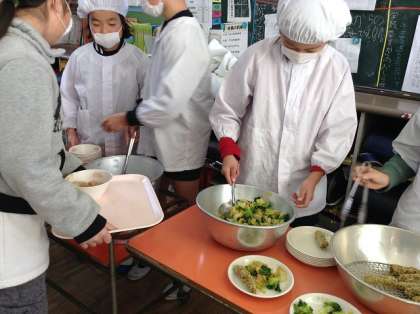 4年2組を訪問しました。手際よく、配膳が進みます。