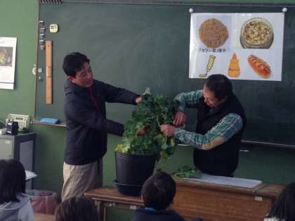 子どもたちから出た「育てていて大変なことは何ですか。」「どれくらい大きくなりますか。」という質問に、JAや生産者の方たちが丁寧に教えてくださりました。