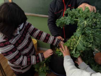 1階中央廊下に置いてあるプチヴェールを使って、日頃どのような世話をしているのか、どこの場所を食べるのか教えていただきました。