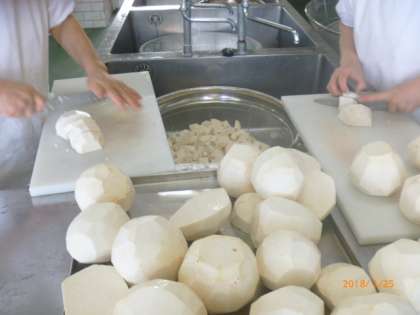 大中寺芋のおけんちゃんの調理の様子