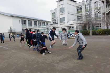朝のグラウンドは、なわとび運動で活気にあふれています!