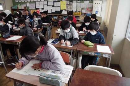 6時間目の直前です。冷たい雨が降っています。