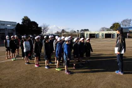 晴天です。 サッカーの授業で、思い切り体を動かします♬