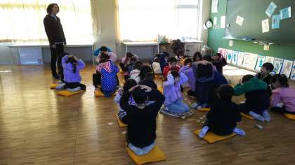 1年生の今日の英語は、文房具でした。ペンやペンシル、といったおなじみの物から、のり、はさみといった初めての物まで、色々な文房具を学習しました。最後は文房具カルタを英語で楽しみました。