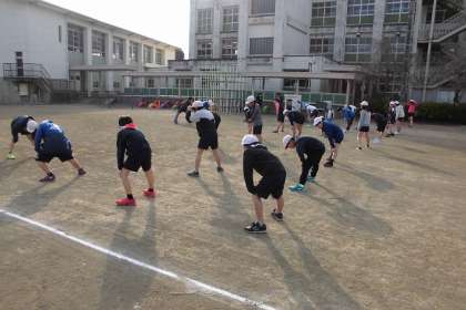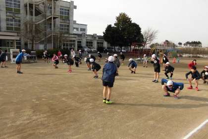 朝のグラウンドは、日差しに暖かさを感じます。