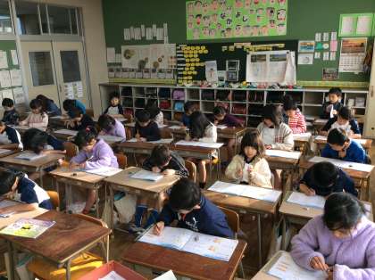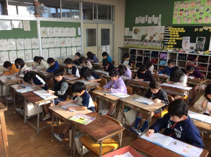 金曜日は朝学習の日です。1年生は朝から一生懸命取り組んでいます。