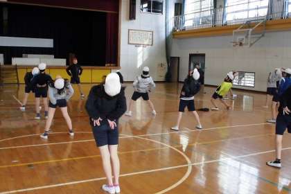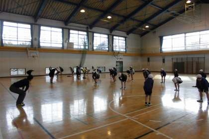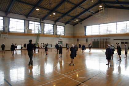 体育館でバスケットボール授業です。