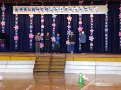 6年生を送る会『中学生に向けて、はばたけスイッチオン!』が、5年生のリーダーシップのものと、行われました♫