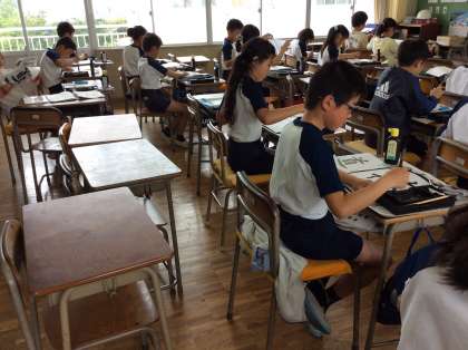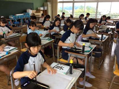 5年の書写では、現在「道」という字の学習をしています。姿勢を正し、心をこめて書きます。「しんにょうが難しい。」と正直な感想が聞かれました。