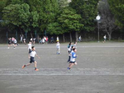 久しぶりにグランドが使えるので、今朝は多くの子どもたちが体力づくりに来ています。