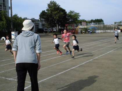 グランドでは走り込みをする子どもたちがたくさんいます。