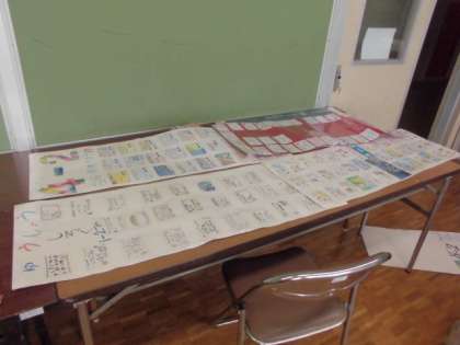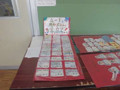 各クラスのメッセージ(運動会への思い、決意、意気込み)です。入退場門に飾られます。