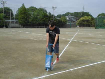 係ごと、仕事内容を確認しています。黙々とラインを引くのは体育主任です。子どもも、教師も、一生懸命はかっこいいですね!