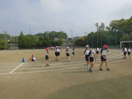 今朝もグランドではたくさんの子どもたちが体力づくりをしていました。