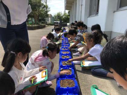 先日タネをまいた朝顔が可愛らしい芽を出しました。子どもたちは嬉しそうに観察記録をとっています。