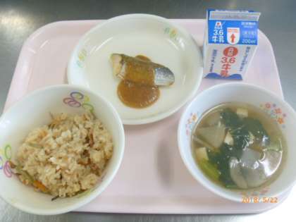 ・山菜おこわ ・牛乳 ・さわらのごまみそだれ ・けんちん汁