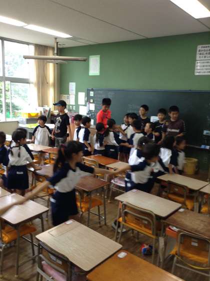 最後に6年生も必ずいれて仲間を作ってくださいと言われ、1年生と6年生が仲良く手をつないでいました。ほほえましい姿でした。