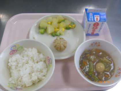 ・ごはん ・牛乳 ・中華丼 ・ねぎみそパオズ ・ポテトと野菜のサラダ