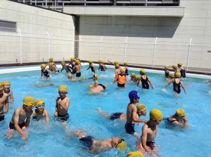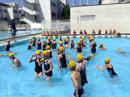 全校で一番最初にプール開きをしたのは、3年生です。まずは小プールで、水に慣れていきます。そして、最後は大プールへ。楽しそうです。