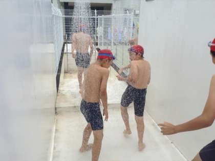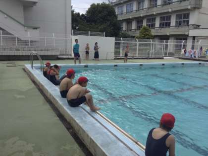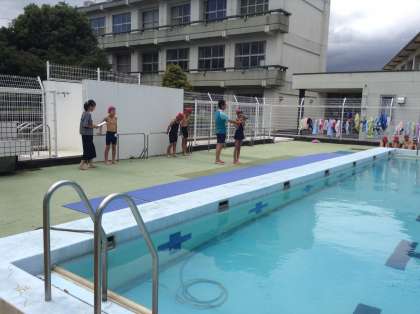 5年生は、プール開きを行いました。絶好の天気でとても気持ちが良かったです。実行委員が式を進めます。