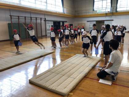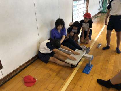 反復横跳び、立ち幅跳び、長座体前屈、握力、上体起こしに取り組んでいます。昨年の記録を上回りたいと真剣に取り組んでいます。