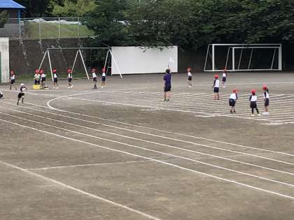 3.4年生はグランドで50メートル走、ボール投げの測定です。