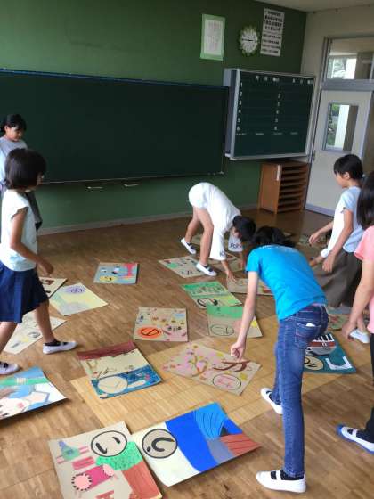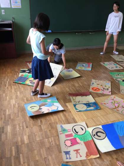 大きいサイズなので教室いっぱいに広げて行いました。